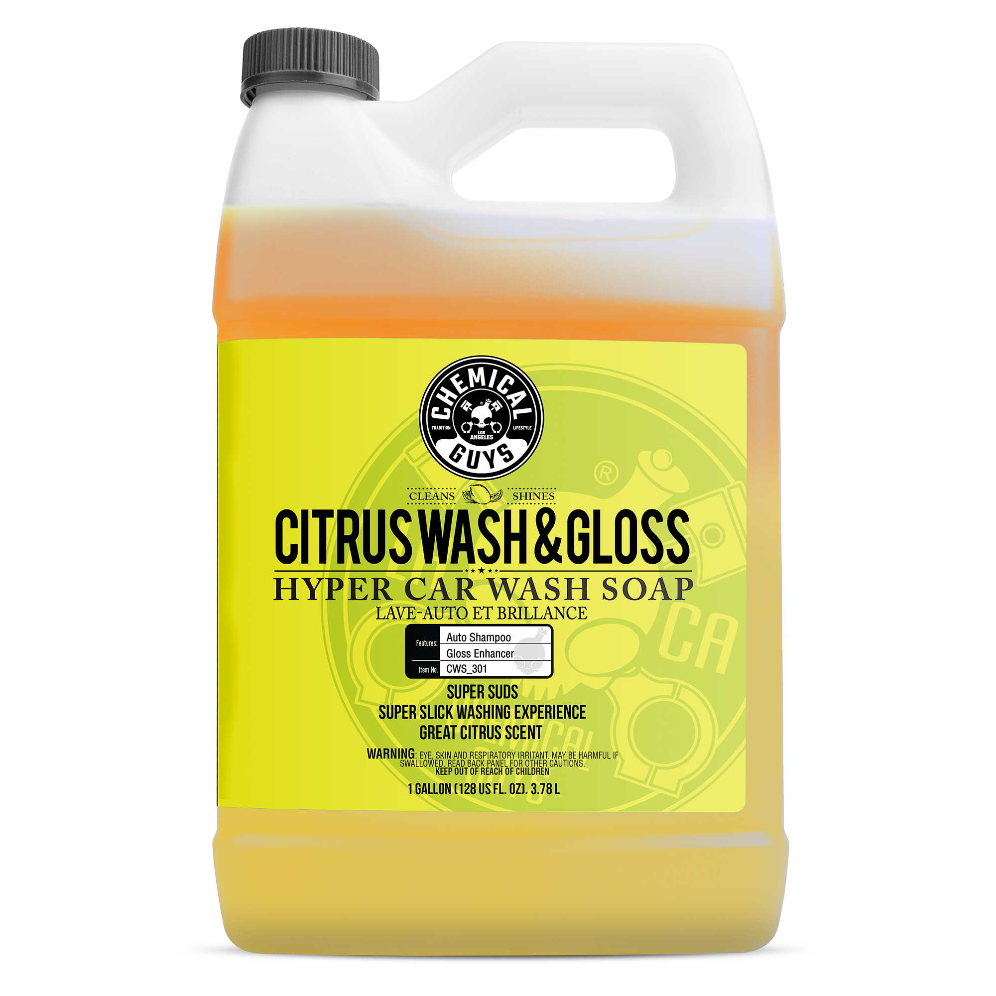 Citrus Wash & Gloss is a powerful hyper-concentrated car shampoo and gloss enhancer formulated to bring out a vibrant shine on all paint colors. Make any vehicle look just waxed and detailed!