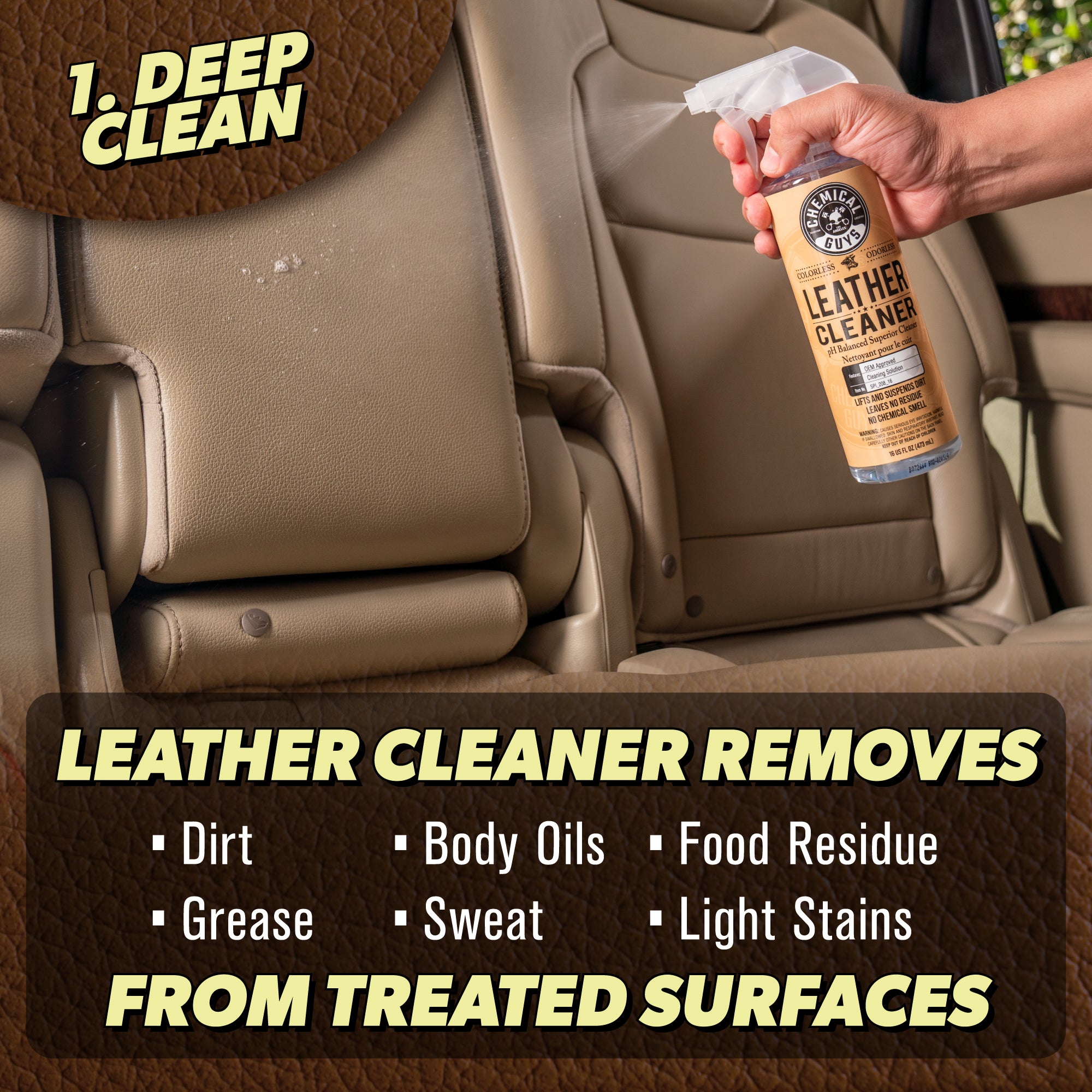 This leather care kit includes three awesome leather care products. Leather Cleaner and Leather Conditioner clean. condition. and protect your leather surfaces. while Leather Quick Detailer wipes are an awesome way to maintain and clean up on-the-go messes.??