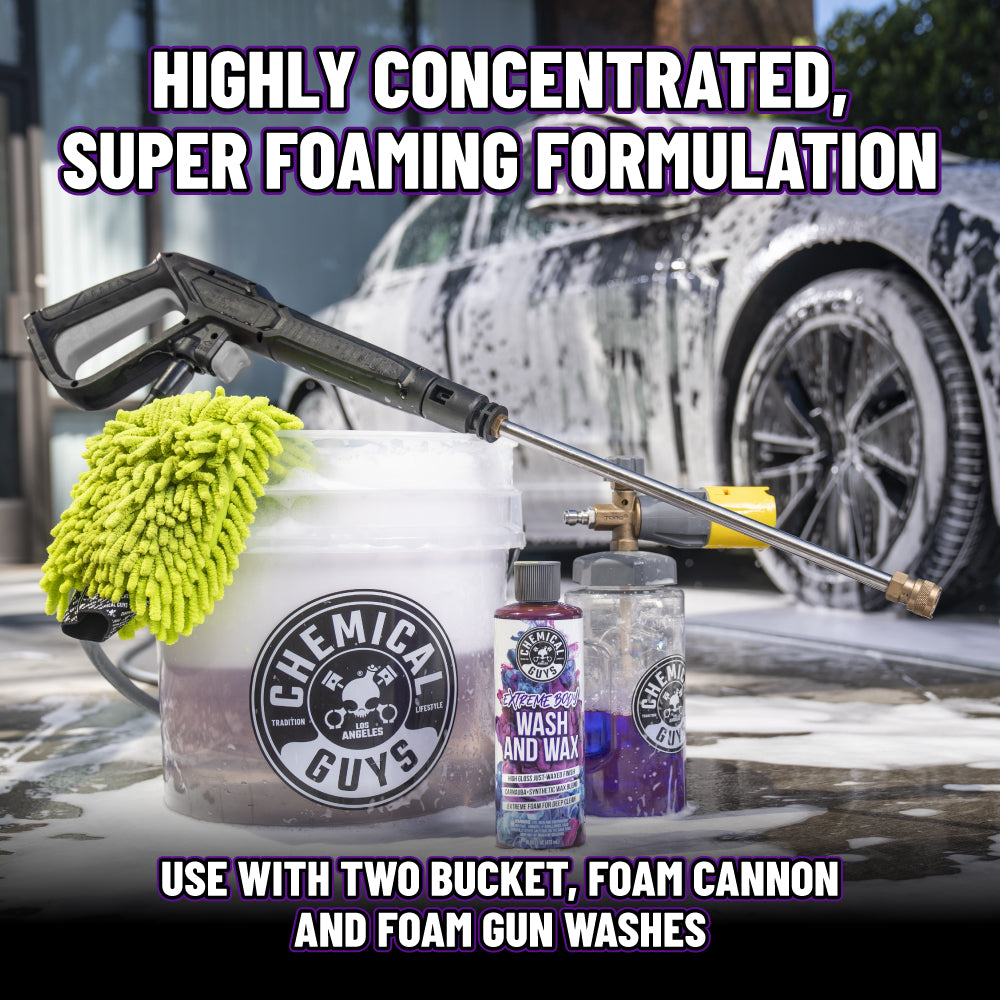 Experience the power of Extreme Bodywash & Wax: a premium car wash soap infused with dual waxes for a gleaming shine and unbeatable protection against the elements.