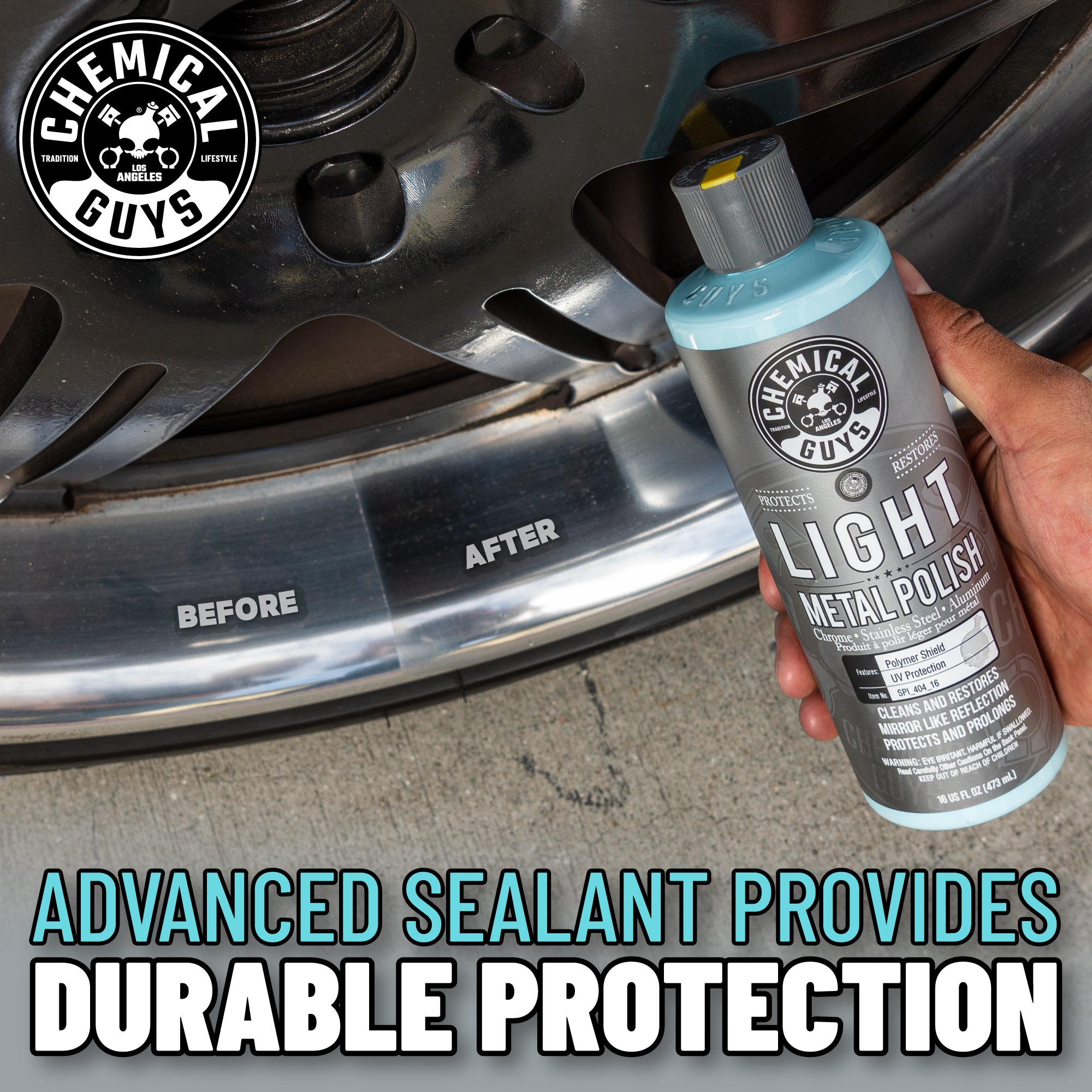 Light Metal Polish removes light stains. oxidation. and grime to restore maximum shine to tarnished metal surfaces and then coats it with advanced sealants to protect the lustrous new shine.