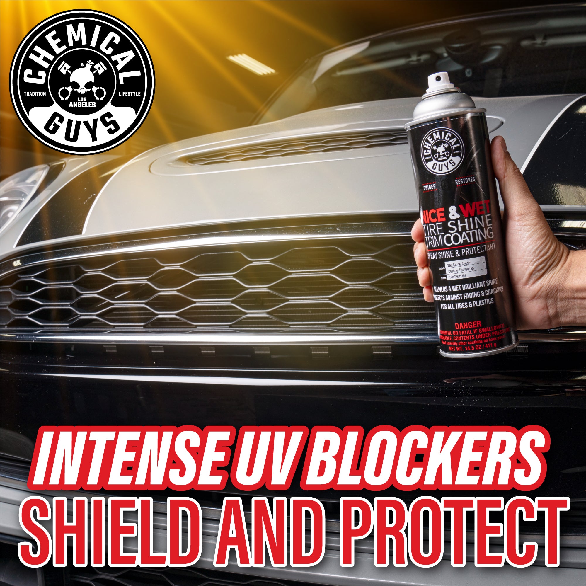 Nice and Wet is a foaming aerosol spray dressing that protects and restores rubber tires and trim pieces. leaving behind a super wet shine for that perfect showroom floor look. Just spray it on and allow it to dry for instant. easy shine.