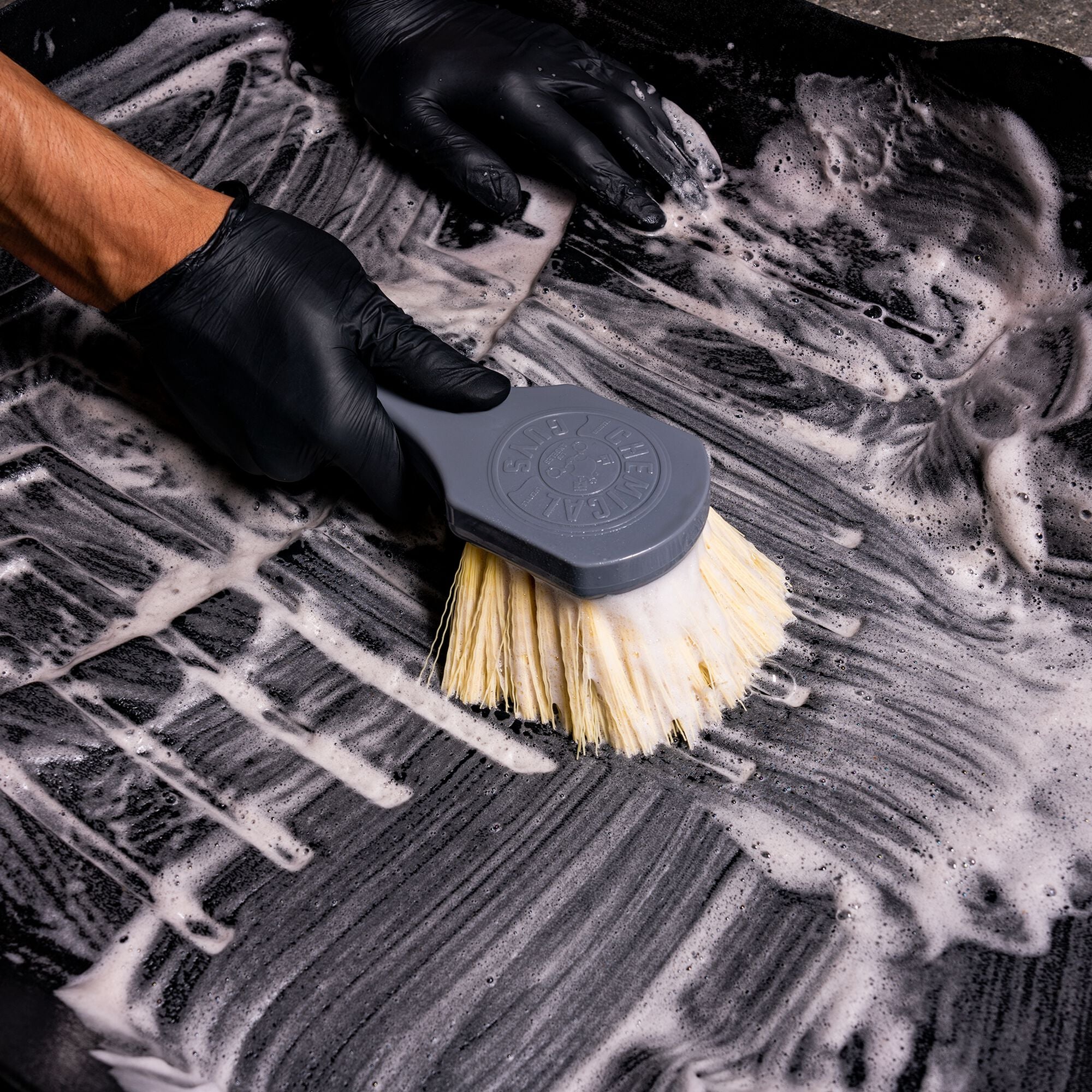 The Nice & Stiff Heavy Duty Carpet and Interior Brush is a stiff-bristled. intense cleaning brush that reaches deep into carpet fibers & floor mats. lifting dirt and grime to restore a spot- and stain-free appearance to your carpet and durable upholstery.