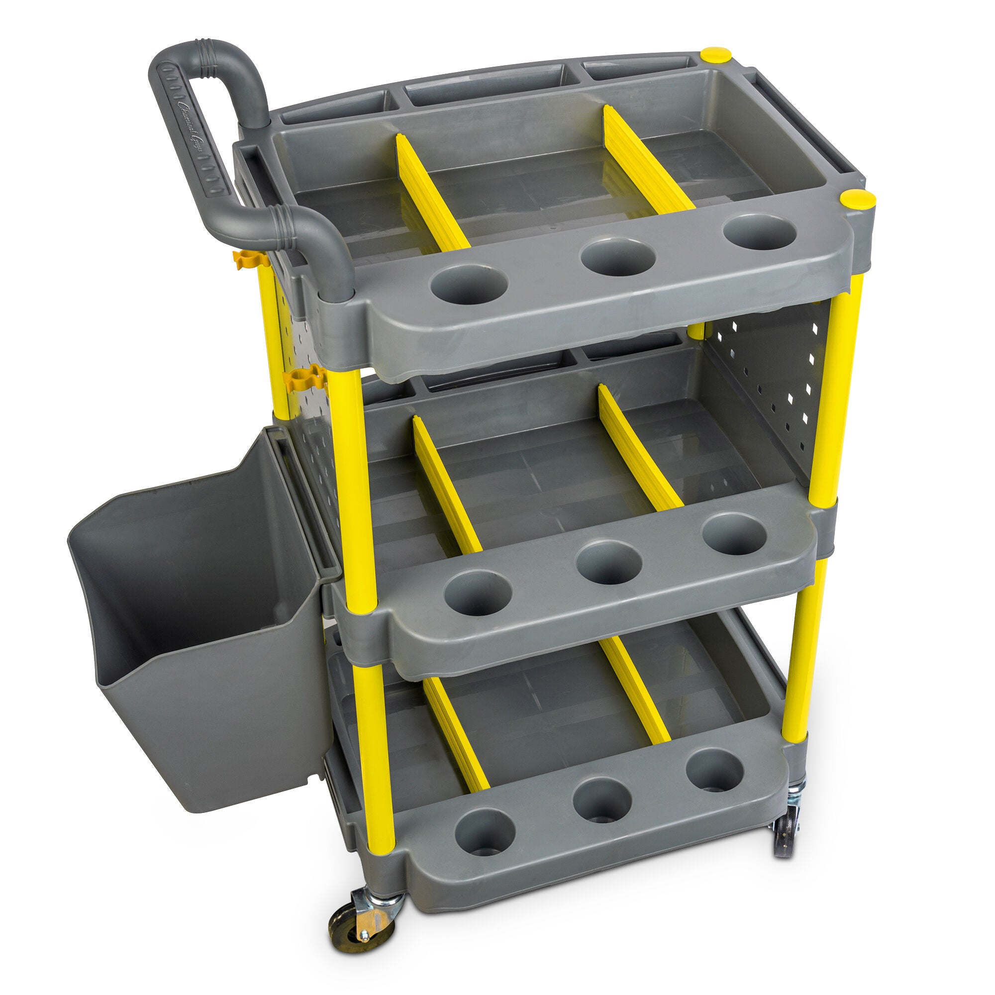 The Chemical Guys Shine Station Ultimate Detailing Cart is the customizable must-have rolling accessory to organize your detailing arsenal and take it on the go with three shelves. numerous bottle holders. hanging racks. and more.