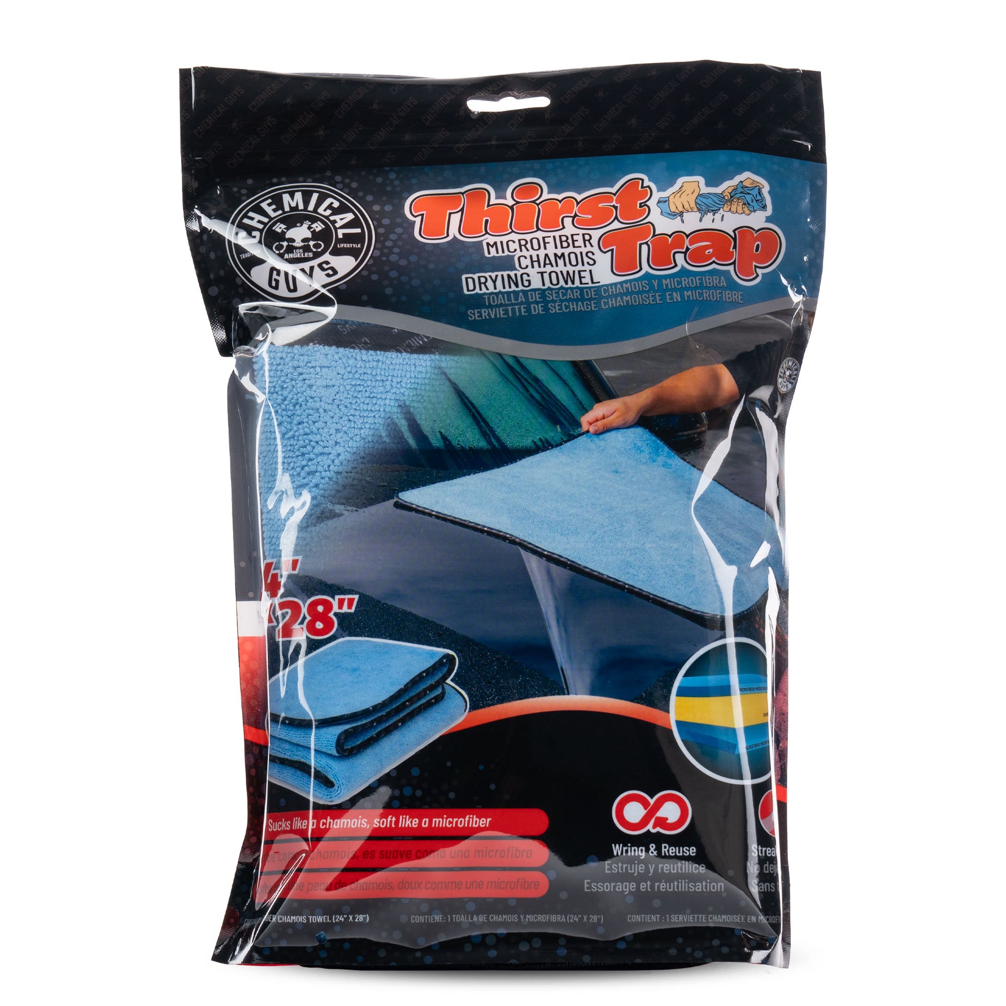 Thirst Trap? Microfiber Chamois Towel combines the ultra-absorbency of a chamois. wrapped in the soft touch of microfiber for an effective. gentle dry. Named for its ability to trap and hold water. it features super absorbency and a quick-wring design. making it durable and reusable for effortless car care.