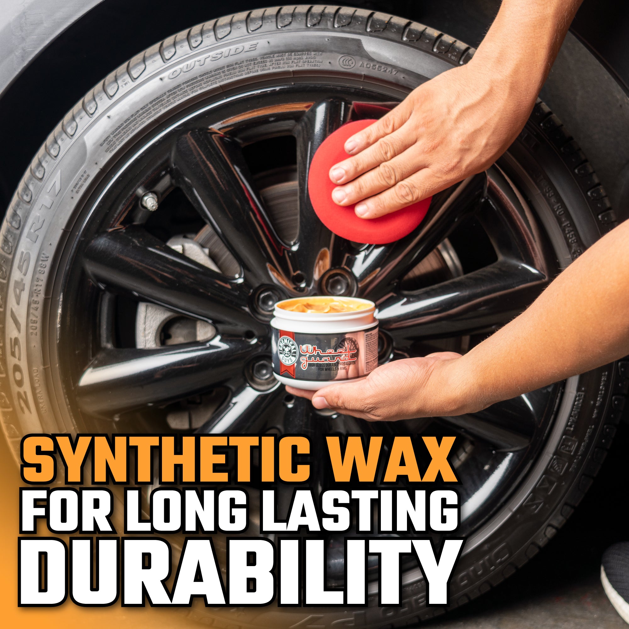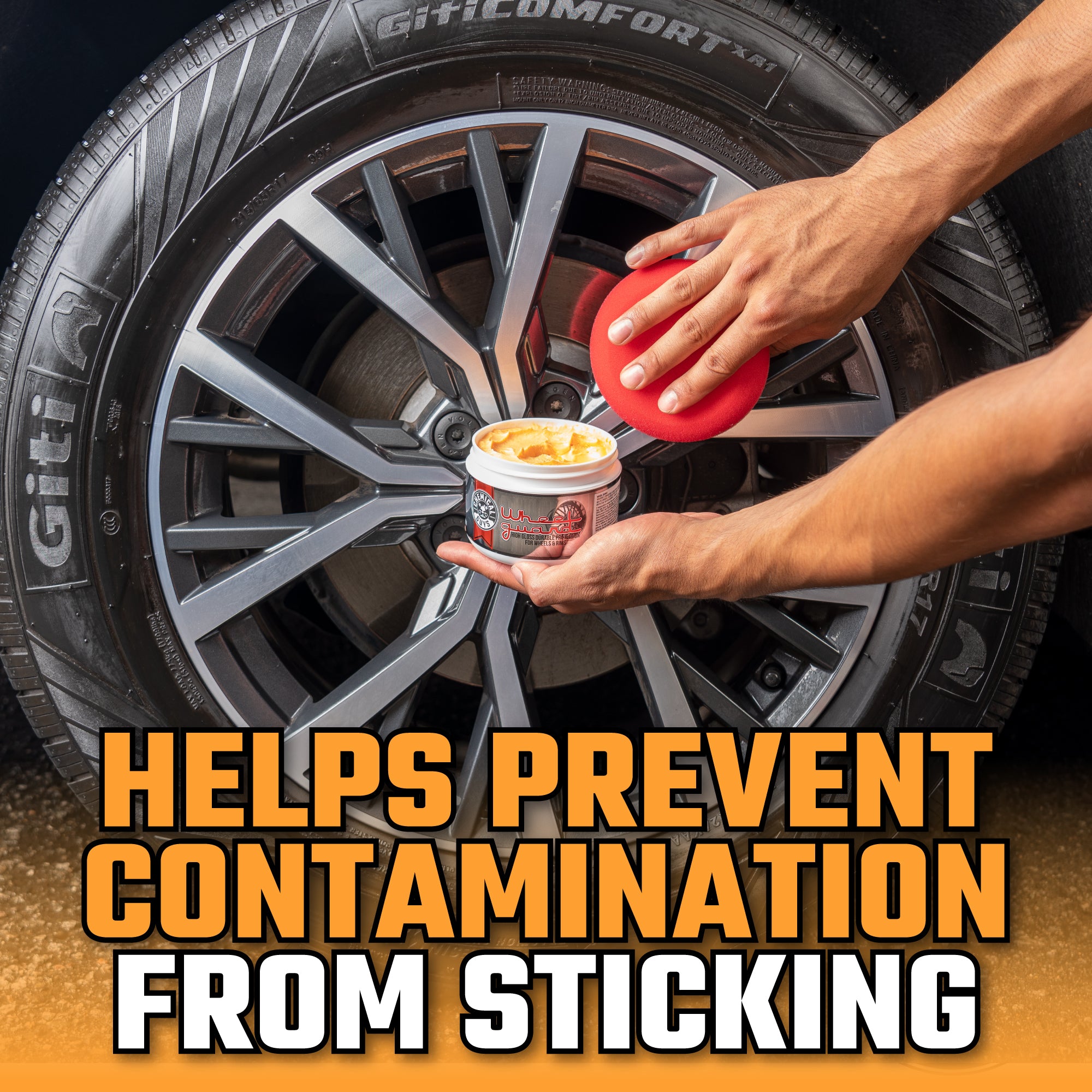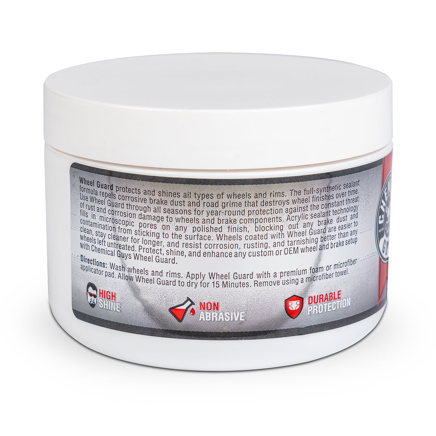 Wheel Guard is a specialty synthetic wax developed just for wheels and brake components to protect against brake dust. grime. dirt. mud. water. and more to keep wheels clean and shiny for longer.